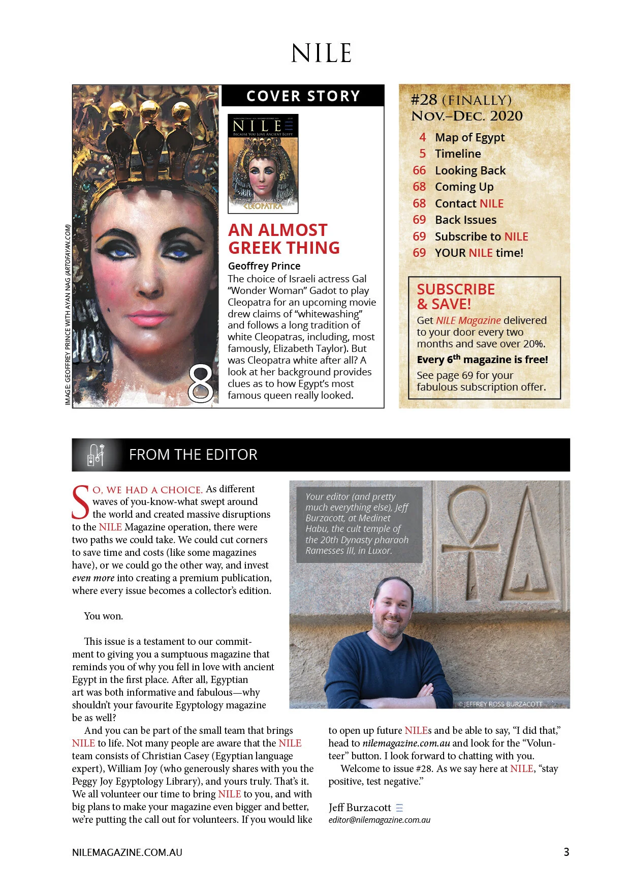 NILE #28, NOVEMBER-DECEMBER 2020. THE ONE WITH CLEOPATRA ON THE COVER